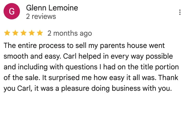 “Carl and his team were very helpful. We had a very difficult family situation but he showed a lot of patience working with all sides of the family. Everything got done and went much smoother than I expected!”